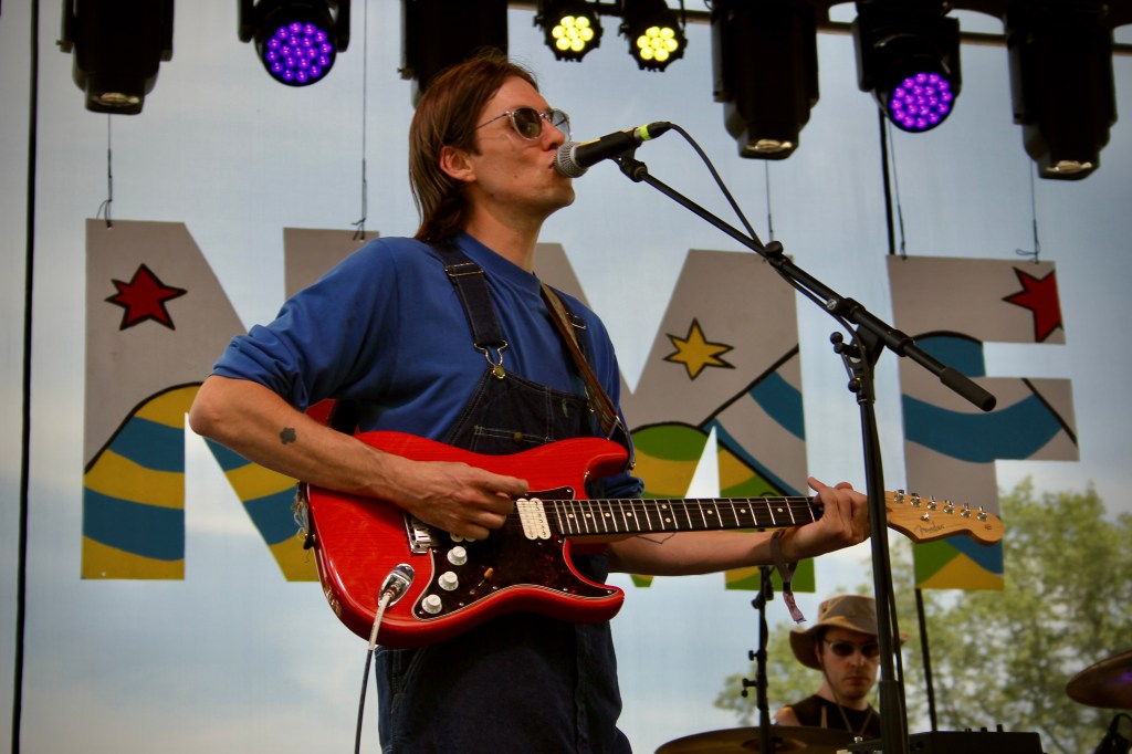 On NMF’s opening day, the festival hit the ground running with Columbus-based indie rock band Natural Sway performing first on Porch Stage at 1:15 p.m. Lead singer Ryan Eilbeck mentioned the late great Michael Hurley and praised his impact on the world of folk. He also took a moment to mention our current presidential administration and the recent ICE raids that have shaken communities across the U.S. His short speech was followed with cheers from the crowd, proving the community’s general discontent with the state of America. NMF is a place for love, unity, and of course, curiosity. In an area where thousands gather, musicians find it a civic responsibility to show up for their people in a way that extends beyond music.